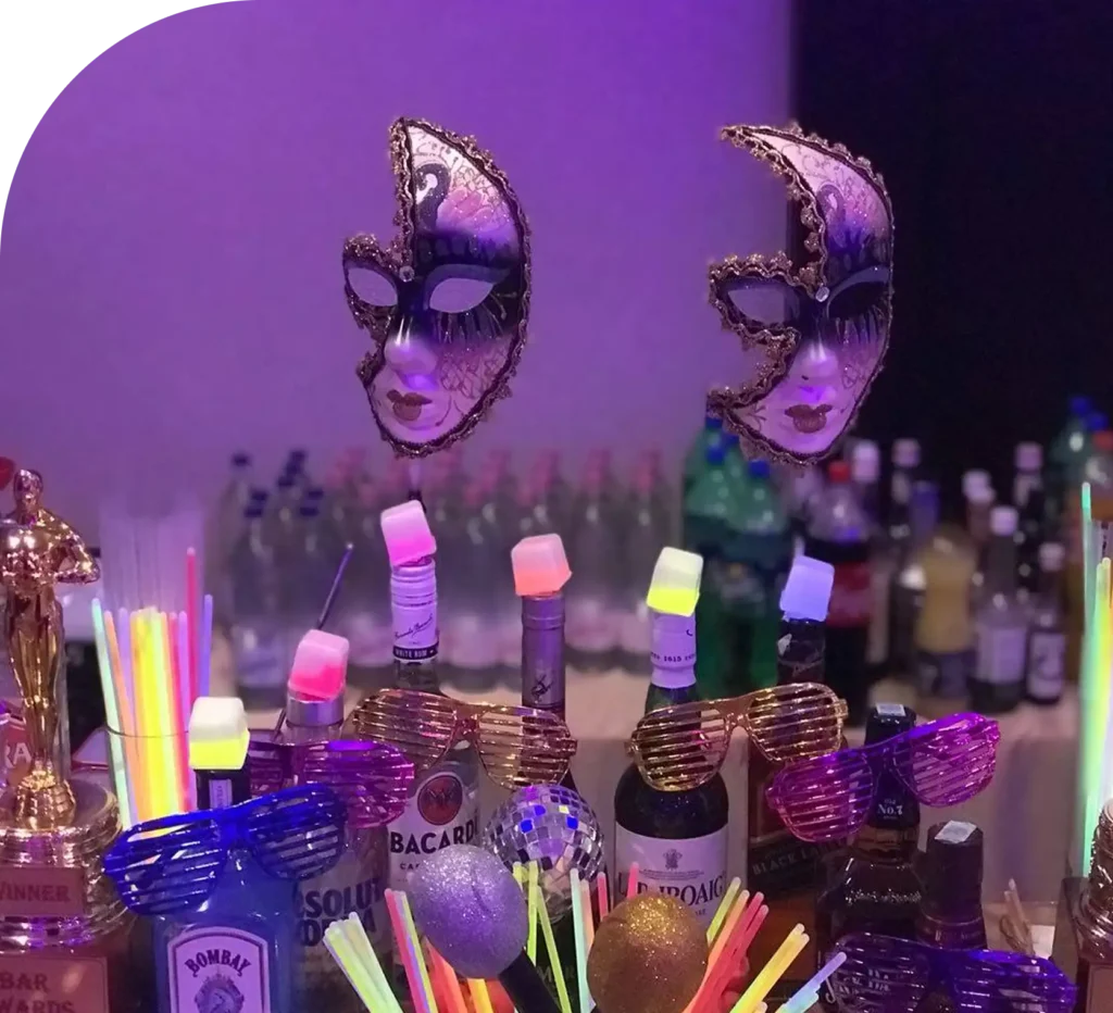 Glassware, disposables, and bar decor